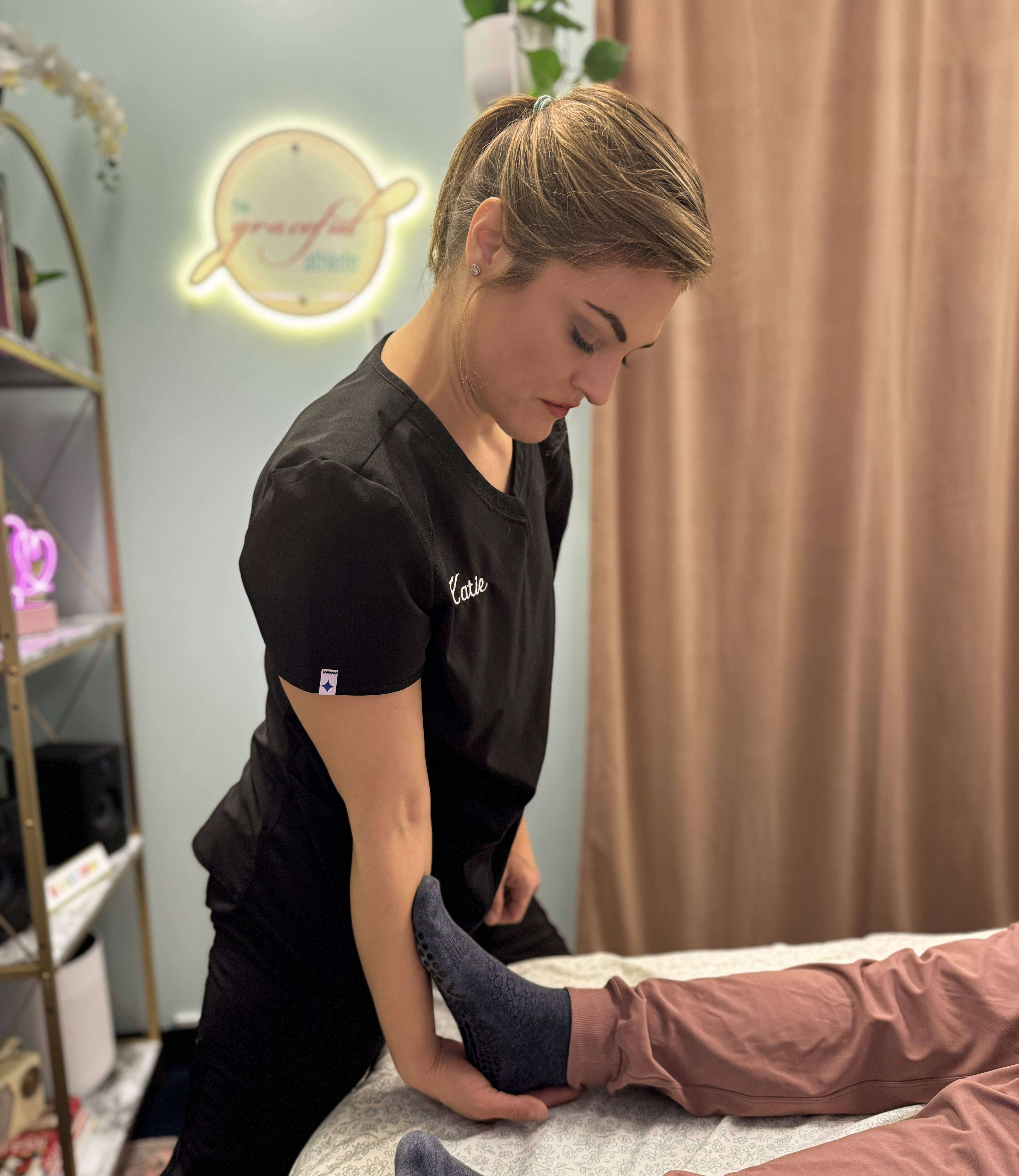 I am a healthcare professional. I have been a chiropractor for over 25 years. I've had the opportunity to work with 100's of massage therapists, stretching therapists and therapists with many different abilities. Katie, The Graceful Athlete is the total package. She is compassionate, professional and offers one of the most comprehensive skill sets I have seen. Above all, she always spends time listening to your actual needs and develops a personalized treatment plan to fit your specific problem. I highly recommend her service.